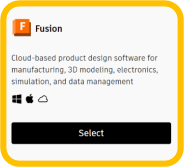 - Select Autodesk Fusion, or whichever software you’d like to use.